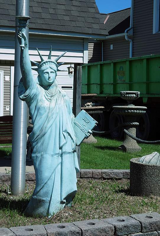 Someone's front yard has a Cheerleader for Immigration. Her torch is out. Site undisclosed, to deter ICE terrorists an opportunity for a disappearance.